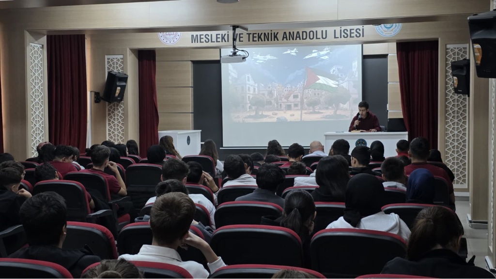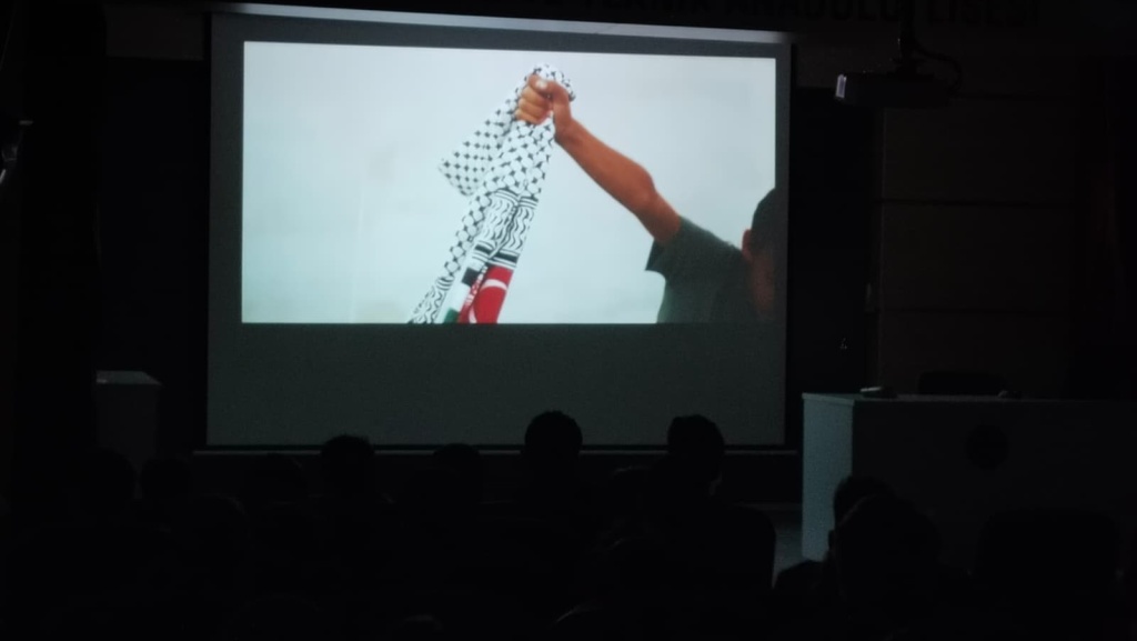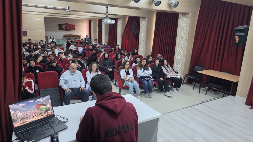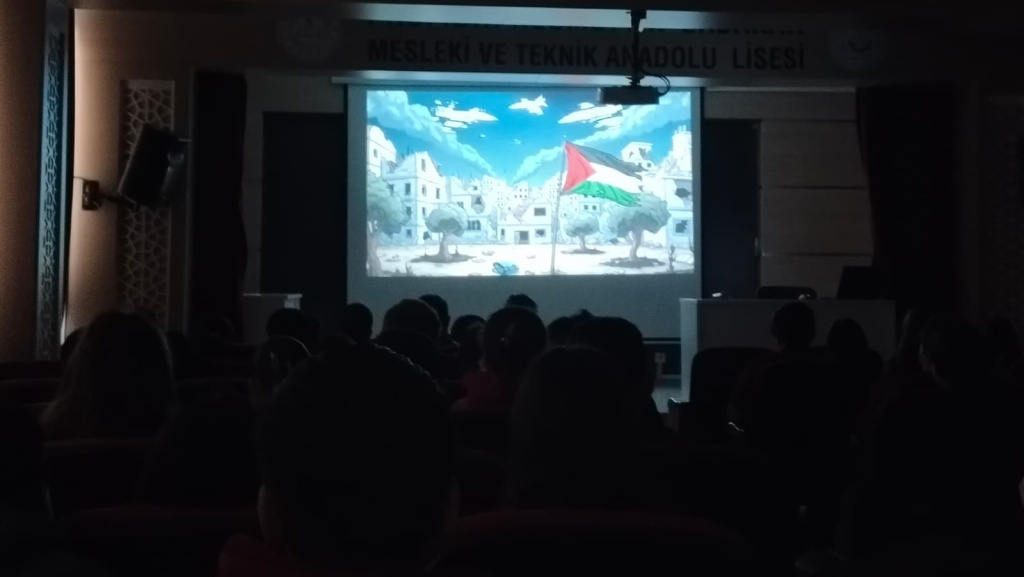 ''Nehirden Denize Özgür Filistin!'' temalı etkinliğimiz kapsamında öğrencilerimiz terörist ve işgalci israilin yaptığı soykırımın boyutlarını izledikleri sinevizyon gösterimi ile daha derin kavrayarak Gazze'de terörist devlet tarafından üzerlerine her gün bombalar yağdıralırak, açlığa terk edilerek, gönderilen yardımların önü kesilerek öldürülen çocukların acılarına şahit oldular. Ve hep birlikte haykırdık: Nehirden Denize Özgür Filistin! Sinevizyon gösterimi sonrası tüm Filistin'de soykırım sonucu şehit olan kardeşlerimizin ruhuna okulumuz öğrencileri tarafından Kur'an-ı Kerim tilaveti ile dualar edildi.