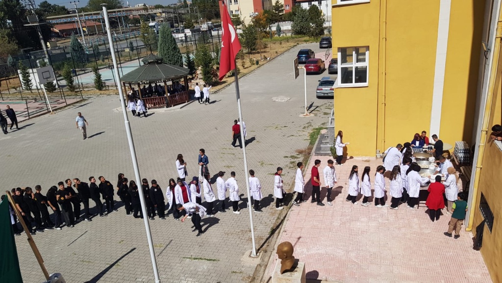 Ahilik haftası içerisinde 9.sınıf öğrencilerimizin önlük giyme törenini gerçekleştirdik. Kesilen kurbanlarımızı öğrencilerimize ikram ettik. Öğrencilerimizin yaptığı Ahilik yeminiyle mesleğe adım atmalarına şahit olduk.Törenimize katılan müdürlerimize , programı hazırlayan ekibimize ve zaman ayırıp törenimize katılım gösteren Şube Müdürlerimiz ile okul müdürlerimize teşekkürü bir borç biliriz.